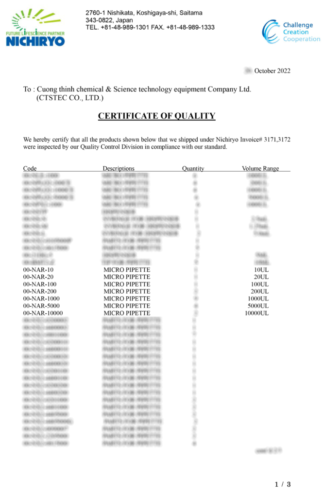 Sản phẩm được sản xuất trực tiếp tại Nhật Bản và được phân phối bởi Công ty TNHH hóa chất & vật tư khoa học kỹ thuật Cường Thịnh – đơn bị có 15 năm kinh nghiệm trong lĩnh vực nhập khẩu và phân phối hóa chất tinh khiết, vật tư tiêu hao và trang thiết bị khoa học kỹ thuật.