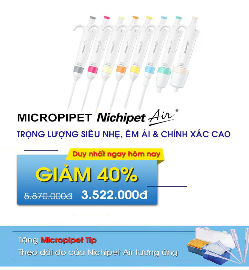 Micropipette Nichipet Air điều chỉnh dung tích bằng đồ gá độc quyền chỉ phải đặt dung tích vào các vạch chia độ – Giảm tới 70% áp suất tải so với các dòng máy thông thường. Gọi ngay 093.131.9988 để tư vấn vào giao hàng